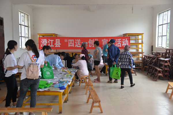 为进一步提高民众的科学文化素质,普及科学知识、反邪教知识、健康知识,增强识别、抵制邪教的能力,2018年8月21日,县科协、反邪教协会、妇联、县防范办、中医院等单位联合深入到九村镇龙潭村委会东溪哨村、七江村委会新村开展“四送一创”宣传活动。活动现场志愿者向当地群众发放了《科普知识趣味读本》、《反邪教知识读本》、《反家庭暴力》、《关爱妇女儿童》等资料1000余份;展出科普展板24块次;科普大篷车滚动播放“法轮功”、“全能神”、“门徒会”等邪教对人民群众造成危害的科教视频;医疗人员为60多位村民开展义诊,送医送药,送健康。此次活动旨在构建崇尚科学、拒绝邪教、关爱家庭、共建平安”的社会氛围,使广大农村群众和青少年进一步增强了科学素养,法律意识和防范邪教意识。