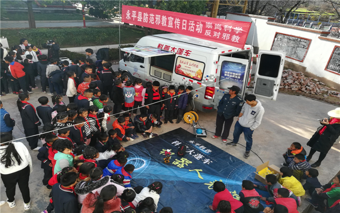 2019年1月3日下午,永平县科学技术协会“少数民族科普工作队“,长途跋涉来到北斗乡双河村完小,开展2019年的第一场“科普大篷车”进校园科普宣传活动,同时还开展了《崇尚科学、反对邪教》“防范邪教宣传日“活动。开启了县科协新一年大篷车科普活动崭新的开始。大篷车给同学们带去了VR眼镜、机器人、无人机等诸多最具科技特色的展品展具,给同学们赠送了《科普知识读本》、《趣味科普读本》、《永平县二十四节气与农事活动》、《崇尚科学反对邪教》、科普作业本等多种科普图书资料,还给五年级的同学们每人赠送了,集“科学、创新、安全、益智、互动”于一体的“科学实验套装“玩具,让大家在“玩中学、学中玩”的过程中体验科学快乐成长,培养同学们讲科学,爱科学,学科学,用科学的浓厚兴趣。提高同学们的科学思维能力和科学文化素质。活动现场秩序井然,笑语欢声,同学们热情洋溢,兴高采烈,意犹未尽!