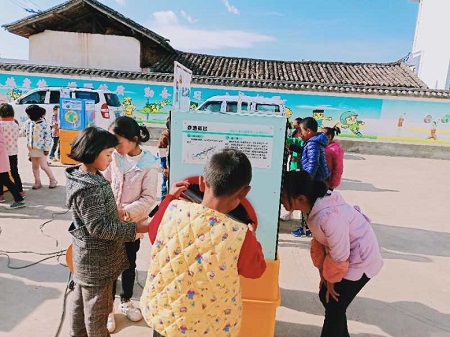 4月2日,鹤庆县科普大篷车走进西邑镇七坪小学,全校45名师生亲身体验了“太阳能发电”、“最速降线”等24种涉及光学、力学等学科的科教展品,寓教于乐,开拓了师生的科技视野,培养了崇尚科学和创新实践的意识。