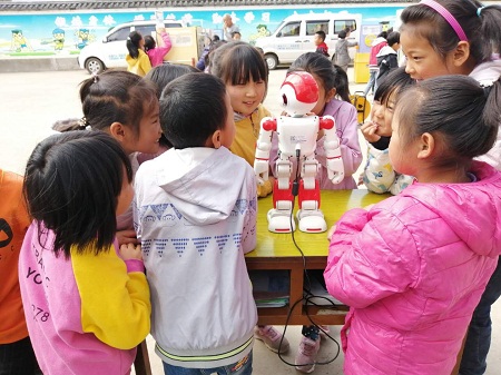 4月2日,鹤庆县少数民族科普工作队科普大篷车走进山区学校---西邑镇响水河小学,机器人互动和科普展品展示与体验,让全校60多名孩子们零距离“触摸”到神奇的科技,感受到科技的魅力。