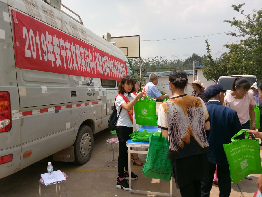 在讲座结束后,安宁市科学技术协会的科普大篷车开进邵九村委会广场,来自安宁市新时代文明实践中心科技与科普服务分中心的志愿者们及时布置反邪防邪展板15块,为社区居民发放《科普小知识》、《公民科学素质读本》以及反邪防邪、扫黑除恶相关宣传材料300余份。
