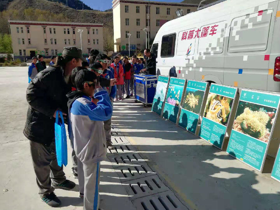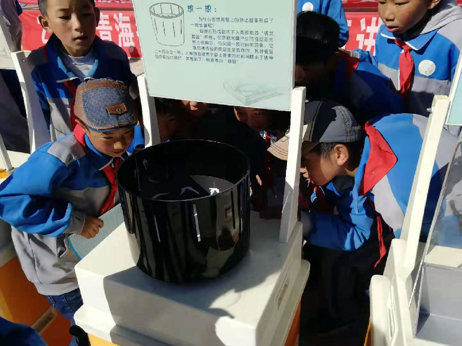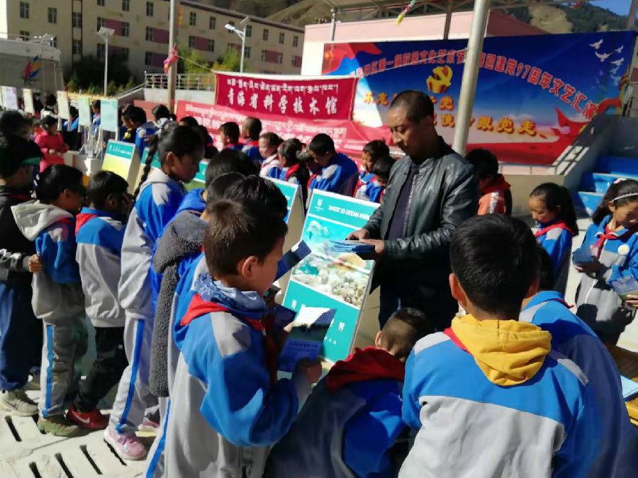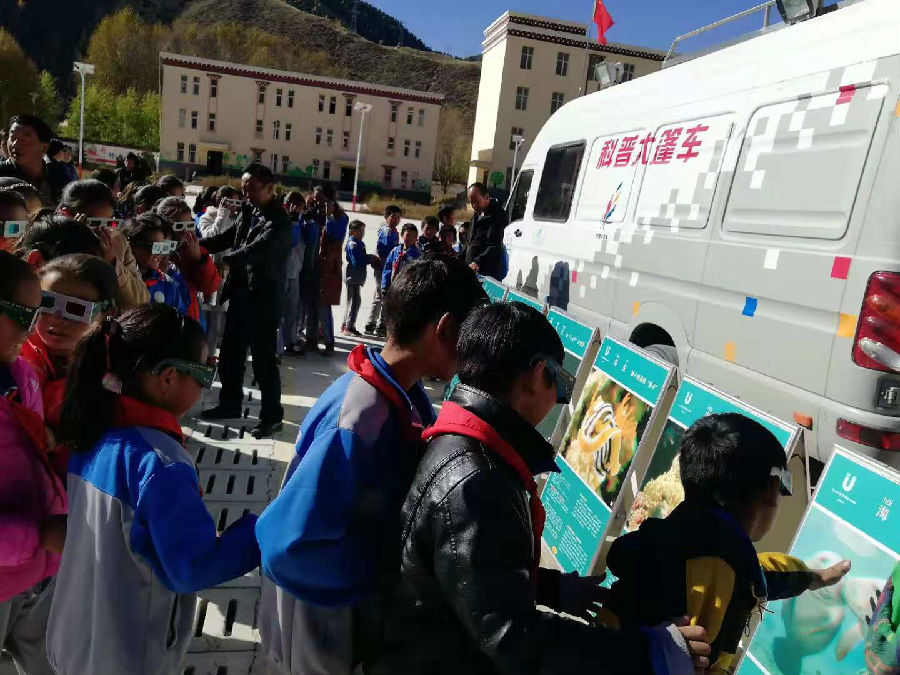 2019年10月17日,生态环境科普“五进”—进校园活动在同仁县扎毛中心寄校举行,省科技馆组织科普大篷车前往同仁县扎毛中心寄校开展生态环境科普“五进”活动。期间,我馆展出基础科学类展品20余件、3D立体科普展板2套,并进行智能机器人表演及VR体验,还免费为公众发放了科普资料,精彩纷呈的内容受到了广大师生的热烈欢迎和一直好评,累计收益公众300余人。