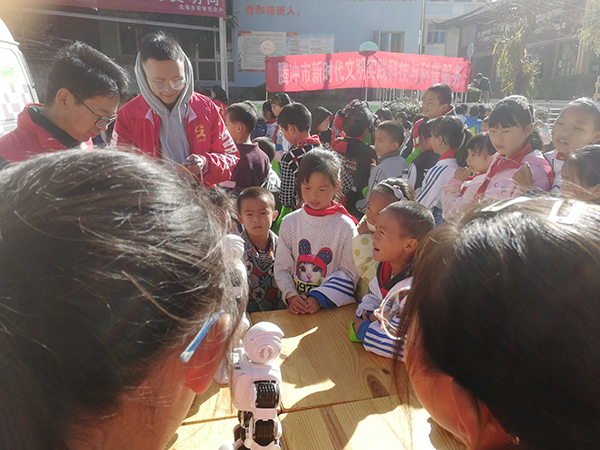 12月13日,云南省腾冲市科普大篷车载着市委办、科协、环保局、心理协会和艾克瑞特机器人教育学校等单位的新时代文明实践科技与科普服务志愿者,到北海乡双坡完小,针对110名学生,开展心理健康辅导、环保知识讲座、科普大篷车体验等新时代文明实践科技与科普志愿服务。