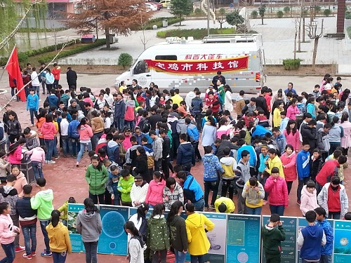 3月23日上午9时至12时,宝鸡科技馆科普大蓬车深入眉县金渠中学开展活动,当天展出3D展板40多面,展品15件。为搞好这次科普宣传,大蓬车队还邀请了市减灾办高级工程师对该校师生进行了“中小学校灾害预防常识”。授课采取互动方式,同学们积极提问,教授授课热情高,收效明显。