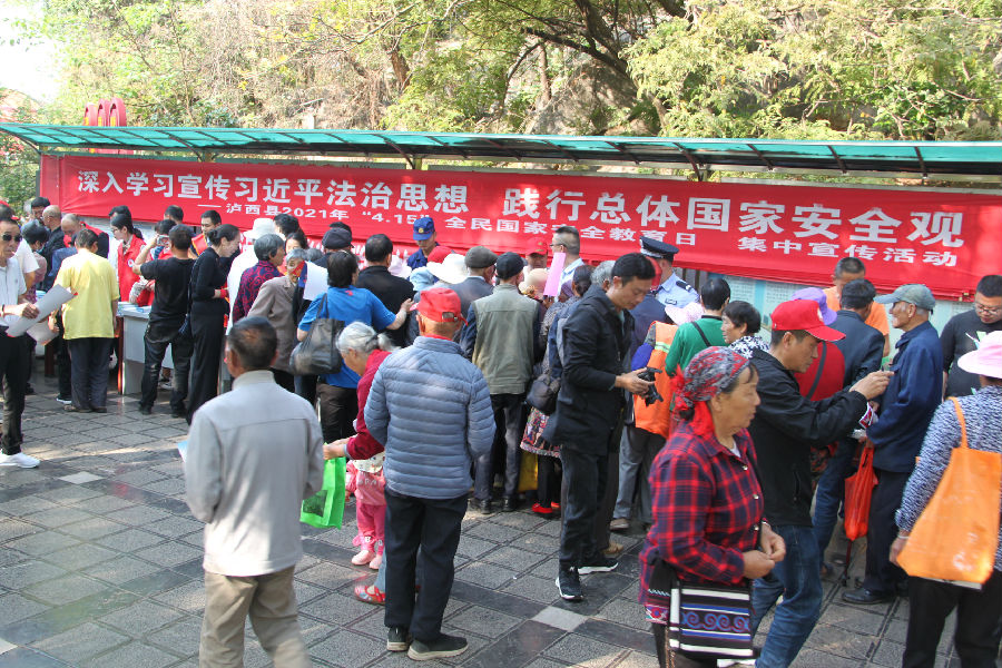 4月14日上午,泸西县科协联合县委政法委、县公安局、县法院、县司法局等部门,在秀山小广场开展“4.15全民国家安全教育日”主题宣传教育活动。
