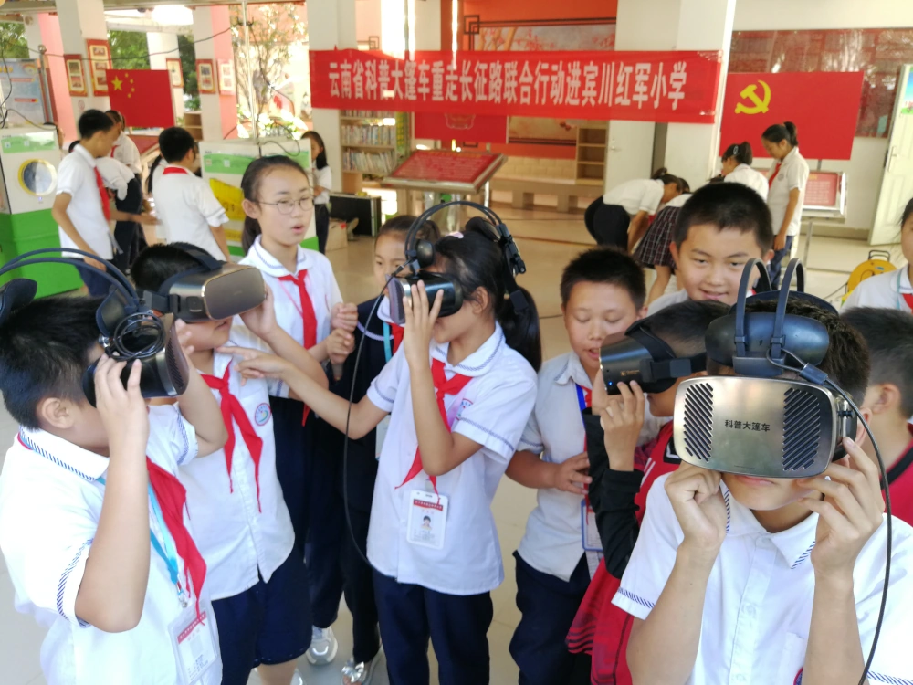 近日,云南省科普大篷车重走长征路联合行动走进宾川红军小学,为同学们带来了各种互动科普展品,让大家享受了一顿丰盛的“科普大餐”。