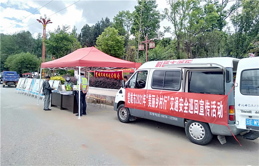 为深入学习贯彻习近平新时代中国特色社会主义思想和党史学习教育精神,庆祝中国共产党建党100周年,充分发挥和利用科普大篷车资源优势,落实市委市政府工作部署要求,助推乡村振兴战略实施,助力主导产业发展,推动全面科学素质提高,推动全面脱贫与乡村振兴有效衔接。6月22日楚雄市科协携手市交警大队在子午镇新大街联合开展楚雄市“美丽乡村行”新时代文明实践活动进乡村宣传活动。