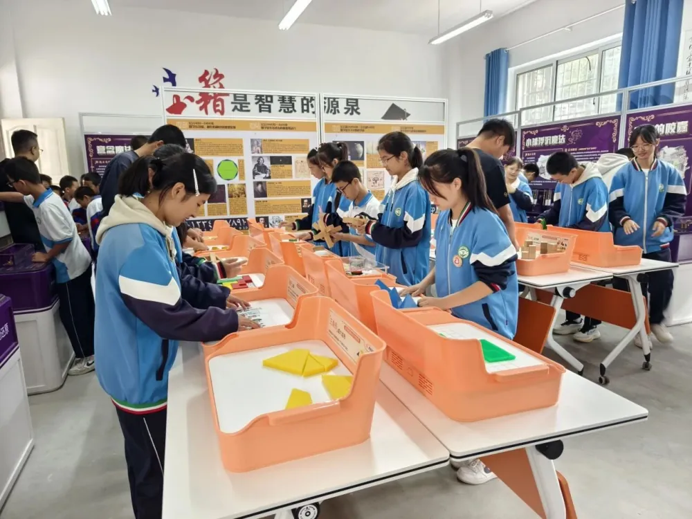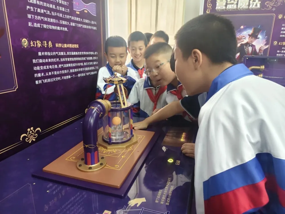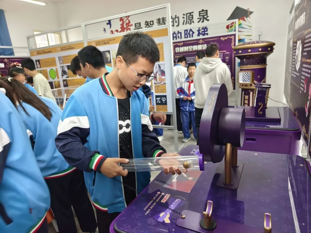 本次巡展活动以互动式、体验式科普展览为主,包含“魔术中的科学”“美丽数学”“险境求生”三大系列共50余件展品,这些展品融合声学、光学、力学等基础学科的科学原理引导学生们主动动手探索、直观感受科学魅力,在趣味体验中解锁知识密码。其中“隐身人”装置展现光学反射趣味、“方轮车”让学生直观感受几何曲线魅力、心肺复苏体验模型帮助大家掌握自救互救技能,十余个妙趣横生的资源互动体验箱也是学生们爱不释手的展项,通过亲手摆放、拼接等方式,让学生们感受到科技的奇妙和乐趣。除此之外,大家还分批次观看了机器狗表演,直观展现了人工智能技术在生活中的应用。