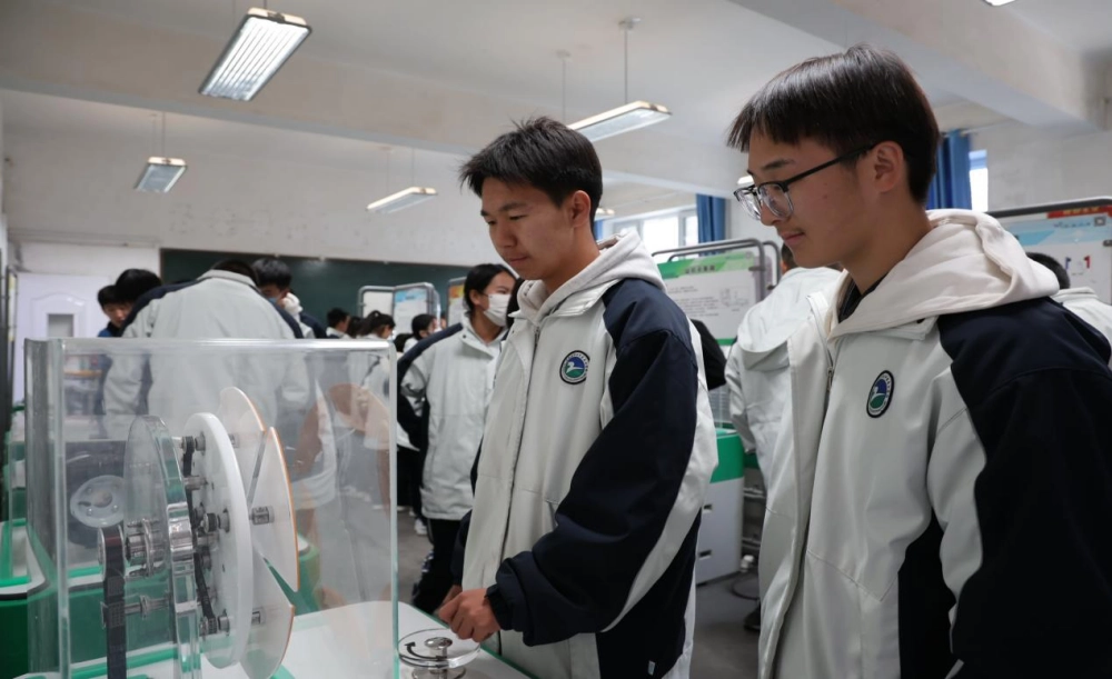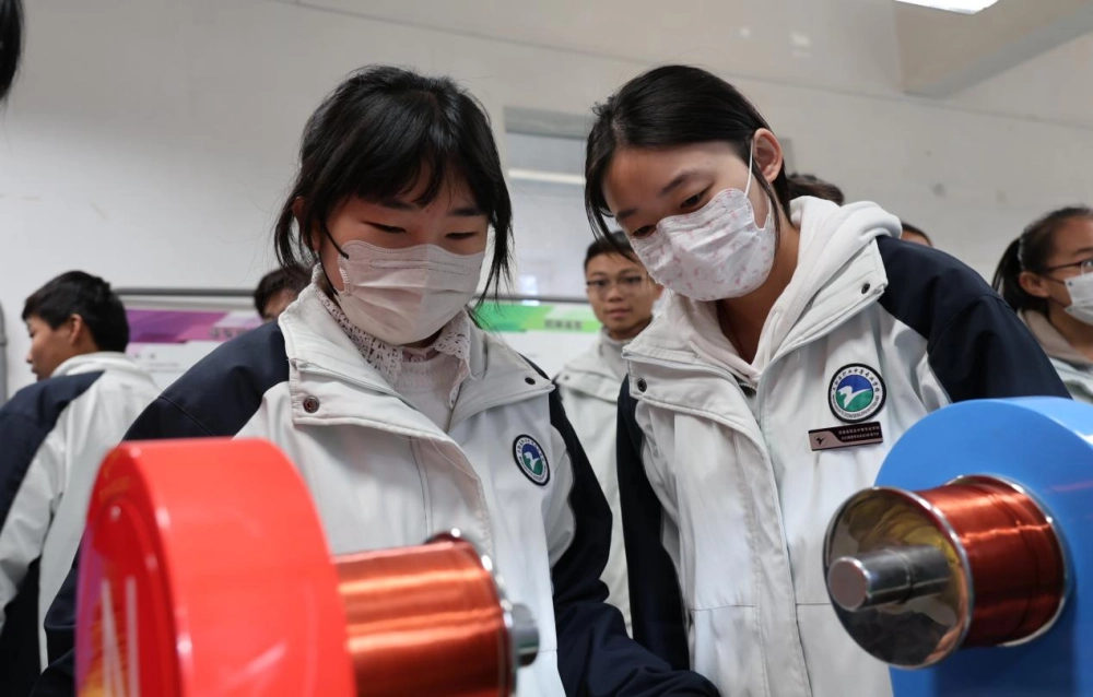 启动仪式后,与会嘉宾与学生代表率先走进流动科技馆展厅。50余件集科学性、趣味性、互动性于一体的展品整齐陈列,涵盖电磁学、力学、光学等多个领域,完美复刻了省级科普资源的优质体验。电磁现象展台前,三名身着校服的学生专注操作铜线圈装置,在动手实践中直观感受电流与磁场的奇妙反应;声光体验、机械传动等展区内,孩子们或驻足观察、或动手尝试,在“看、学、玩”的沉浸式体验中,让抽象的科学原理变得生动可触,现场洋溢着浓厚的探索氛围。