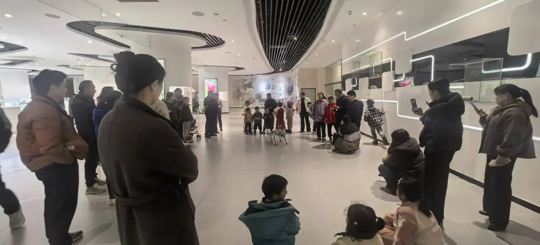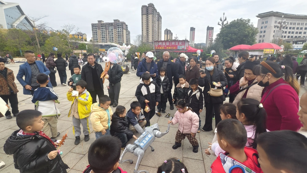 罗甸县科协还利用科技馆比邻活动主场地优势,在门口广场开展各类科学表演。伴随着欢快的音乐,灵活灵动的机器狗率先登场,跳舞、打滚、跨越障碍等一系列高难度动作行云流水,时而迈着整齐的步伐巡游展示,时而做出憨态可掬的互动姿态,引得现场观众阵阵欢呼,不少家长纷纷拿出手机记录下这精彩瞬间。紧随其后的无人机表演同样惊艳,数十架无人机在空中精准编队,不断变换不同图案,让现场观众沉浸式感受科技与艺术碰撞的魅力,欢呼声、惊叹声此起彼伏,为元旦之夜增添了浓厚的节庆氛围。